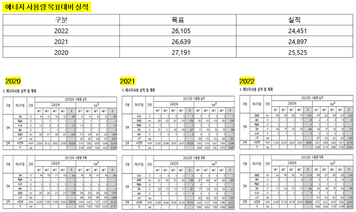 [환경] 2022년 에너지 사용 절감 목표 대비 실적